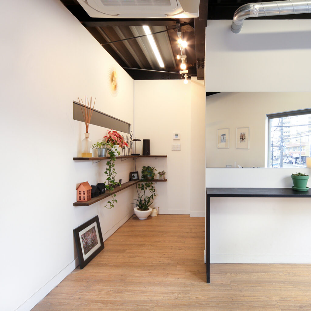 白と木目を基調とした店内空間にて、来店された全てのお客様に穏やかな時間が流れるよう